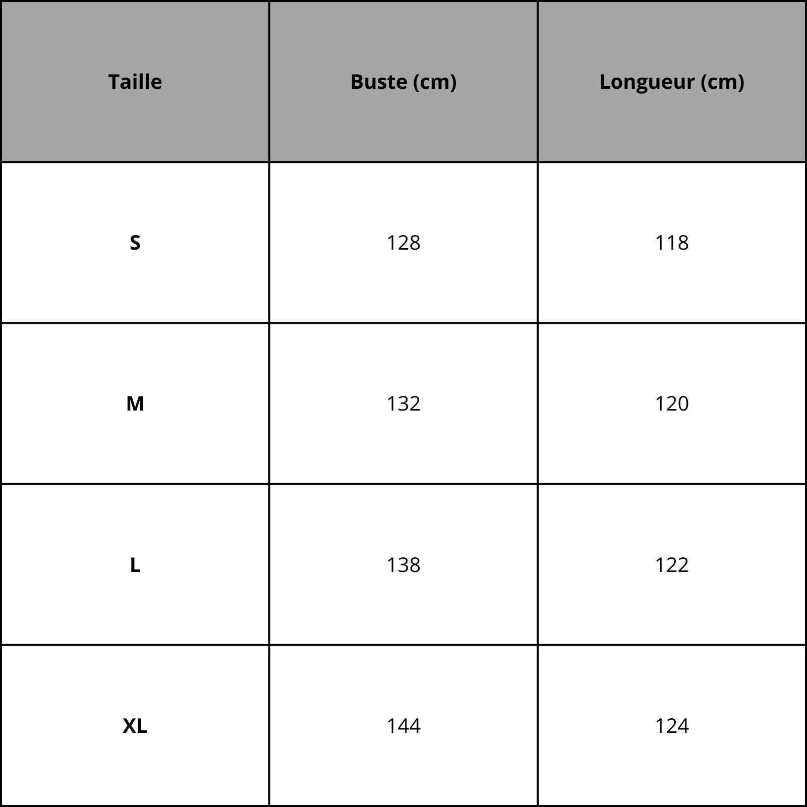 - Spécificités : Long, manches longues, ceinture à nouer à la taille.